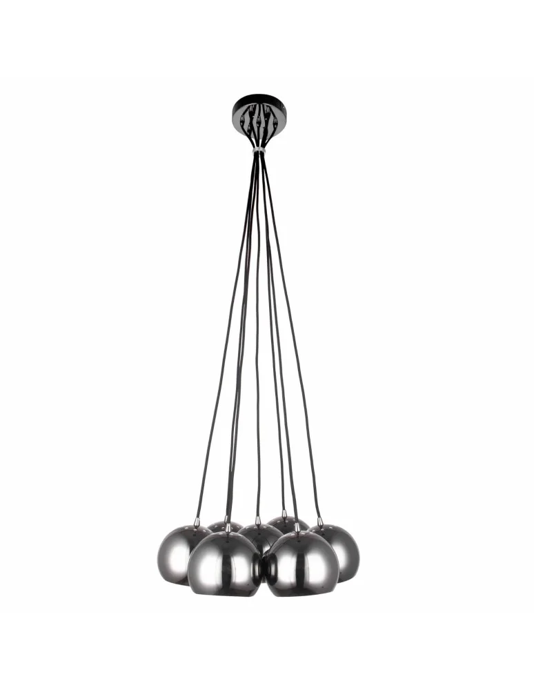 Punto 7 pendant graphite - if your living room seems too warm and dark to you, and you have neither the time nor the desire to repaint - then an alternative would be to buy Punto lamp. This lighting product, will certainly manage to cool and brighten your interior. This pendant ceiling lamp, is made of seven, medium-sized shades in graphite color. They have the shape of an incomplete sphere. They are mounted, on metal rods, of the same color, which, going upward, connect at the base and form a wigwam-like weave. The color of the lampshades is quite cool and slightly mirrored. An excellent room for this lighting, would be a large living room or kitchen, as well as an office room. The length of the lamp is more than one and a half meters. Having this product, you will definitely bring an upgrade to your interior design!