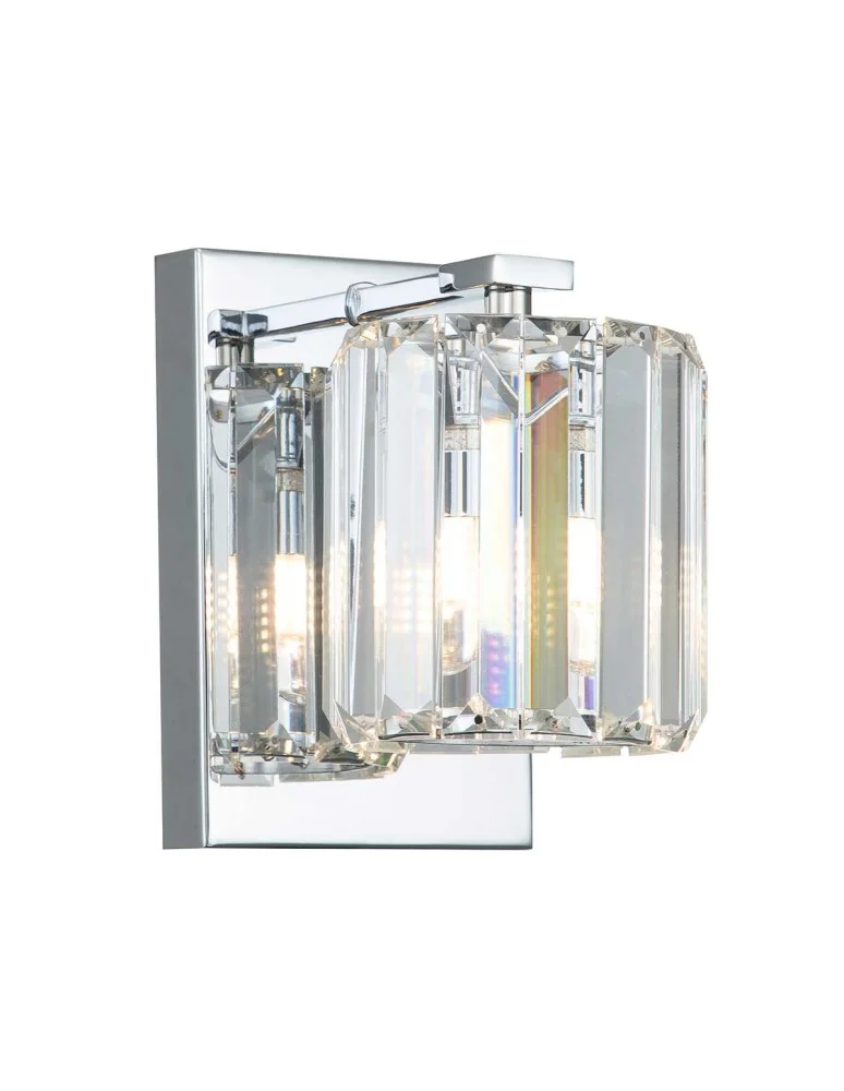 Divine is a collection of minimalist yet very elegant bathroom wall sconces finished in polished chrome and decorated with crystal glass. The glass panels are arranged to form a shade around the LED bulb. The lamps in this family have an IP44 waterproof rating.