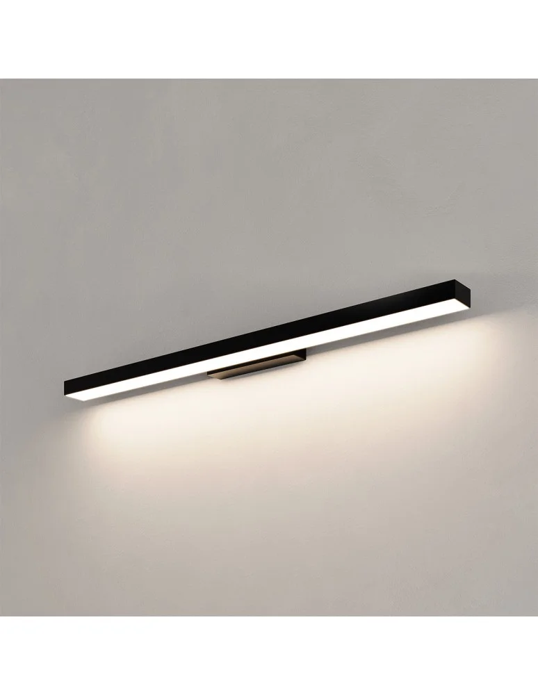 The Aqua wall lamp is an elegant bathroom lamp, made of durable black metal, which, thanks to its IP44 protection class, is perfect for wet rooms. It is equipped with a built-in LED CCT light source, which allows you to set the light color before installation, directly in the soffit. Its simple, oblong shape is ideal for mounting above the mirror, providing functional and stylish lighting in any bathroom.