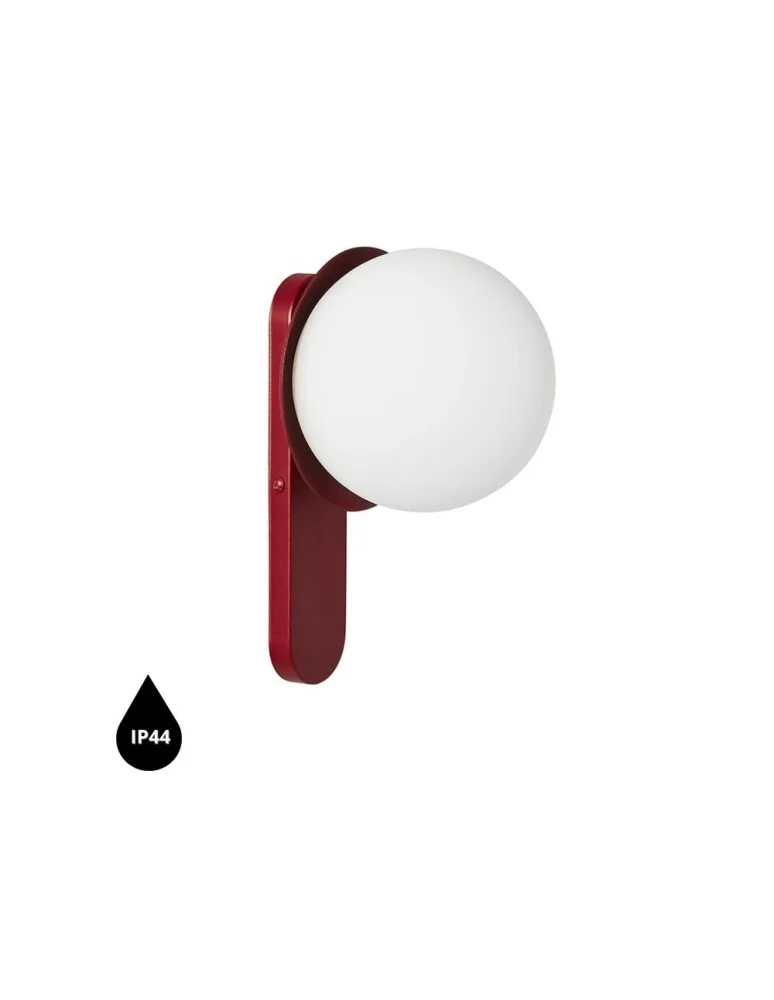 - wall lamp / wall sconce - height 26,5cm - matte white glass diffuser - ceiling bezel lacquered in structured burgundy - 2 X 0.75mm2 two-core cable - max 12W - IP44