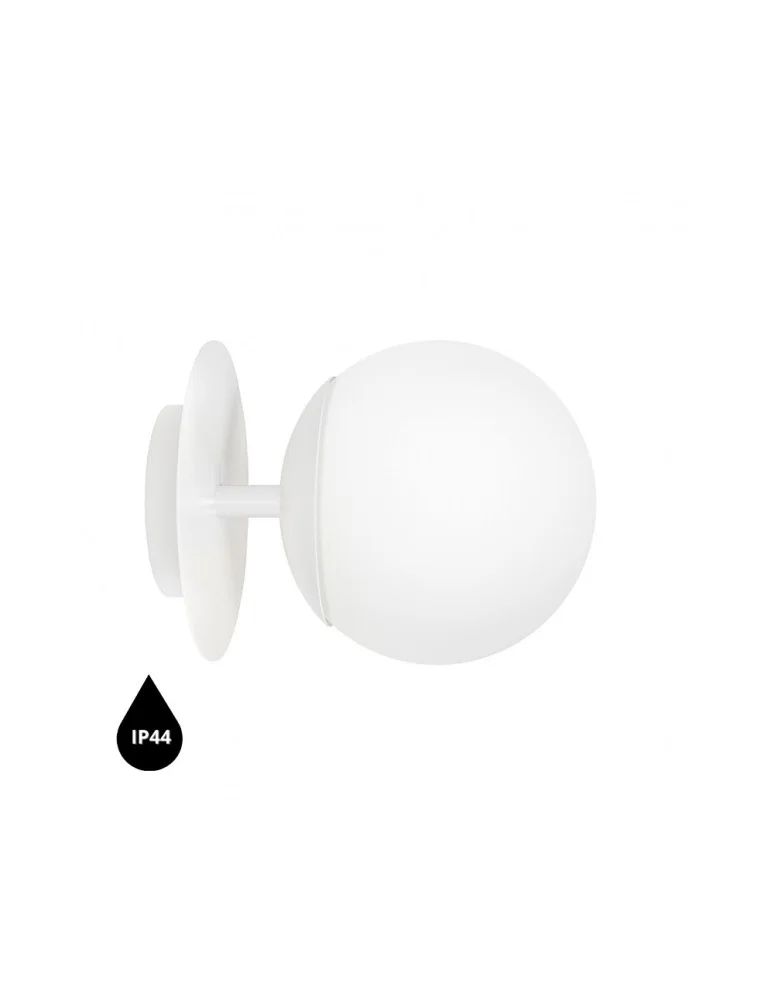 - wall lamp, wall sconce - metal / glass - white - height 20cm - depth 27cm - diameter 20cm - matte white glass diffuser fi 20cm - wall mount painted in structural white fi 14cm - metal disc fi 20cm - two-core cable 2 X 0.75mm2 - thread E27 - max 15W - IP44