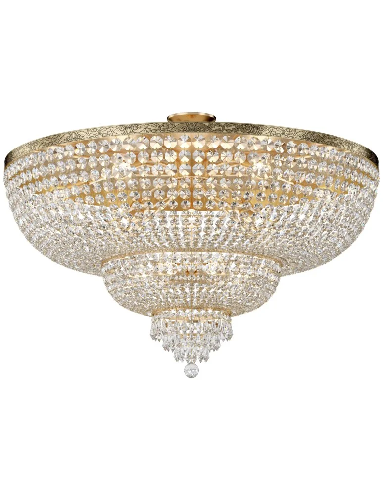 Maytoni Palace is decorated with hundreds of sparkling crystals carefully framed in a tasteful metal frame in a shade of antique gold. With a massive diameter of 100 cm, the chandelier becomes the focal point of any living room, lobby or banquet hall. Thoughtful arrangement of 18 E27 light sources allows you to enjoy extremely intense, even and atmospheric lighting, creating a magical atmosphere regardless of the occasion.