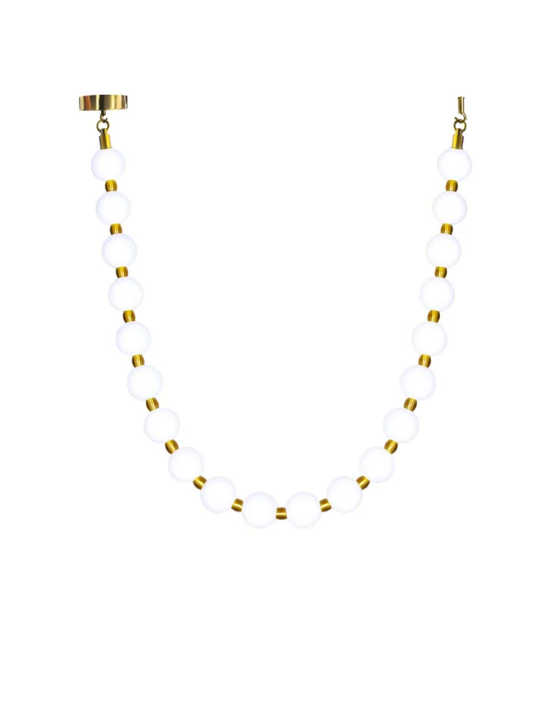 The Dorado Rope lamp from the Dorado collection is distinguished by its unconventional rope shape, which is formed by interconnected round shades made of white acrylic. These lampshades gently diffuse light, providing pleasant and even illumination of the room. Gold metal joints between the lampshades and elegant headliners add a chic and modern touch. The lamp is 2 meters long and is mounted on two soffits. Dorado Rope is equipped with advanced LED CCT lighting, which allows you to set your preferred light color - from warm to neutral to cold - even before installation, making it ideal for different interiors and their functions. With its unique design and modern features, the Dorado Rope lamp will be perfect for both residential and commercial spaces, bringing an element of elegance and functionality to them.