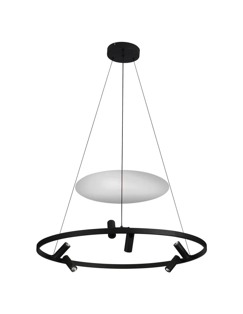 The Almeria pendant lamp is distinguished by its unusual design, which attracts attention with its unique style. It is made of a solid metal rim, on which the reflectors with integrated LED light of neutral color 4000K are placed.