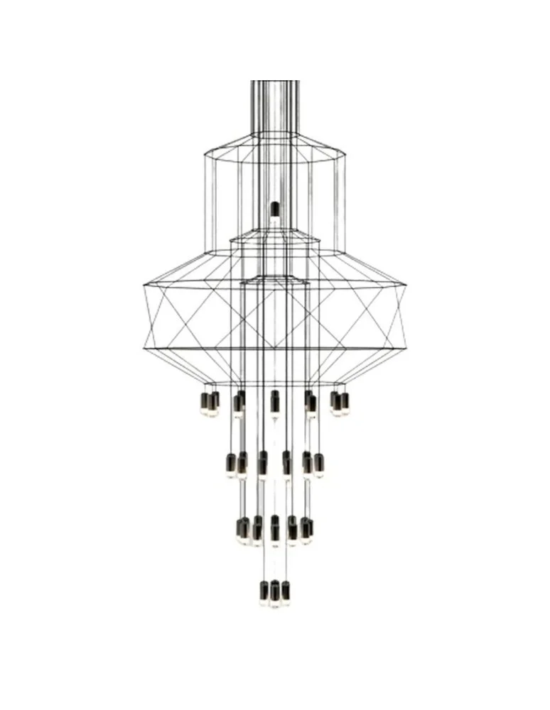 LINEA-43-XL lamp is powered by forty-three light wires ending in satin glass shades.