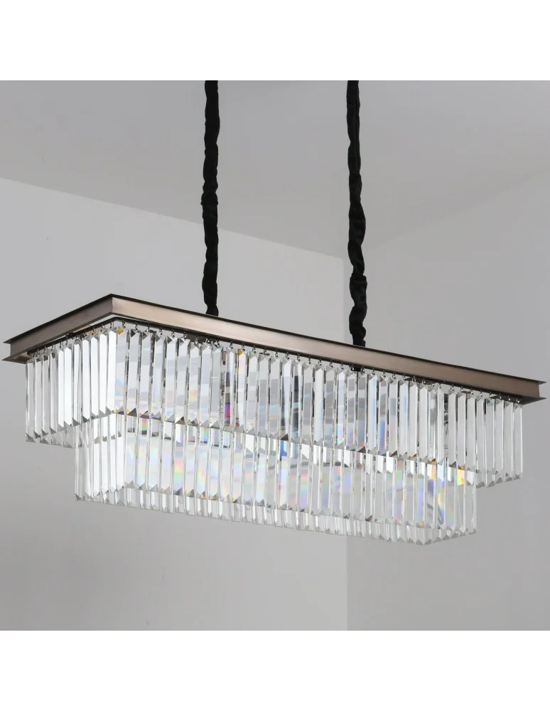 SPARKLE DOUBLE pendant lamp is a luxurious, impressive crystal lamp topped with a rectangular frame in brushed anthracite color.