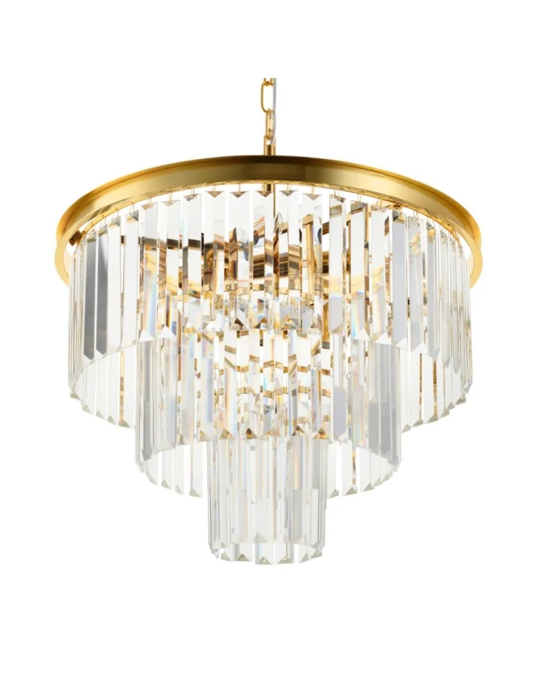 The gold SPLENDORE lamp is made of metal and crystal glass.