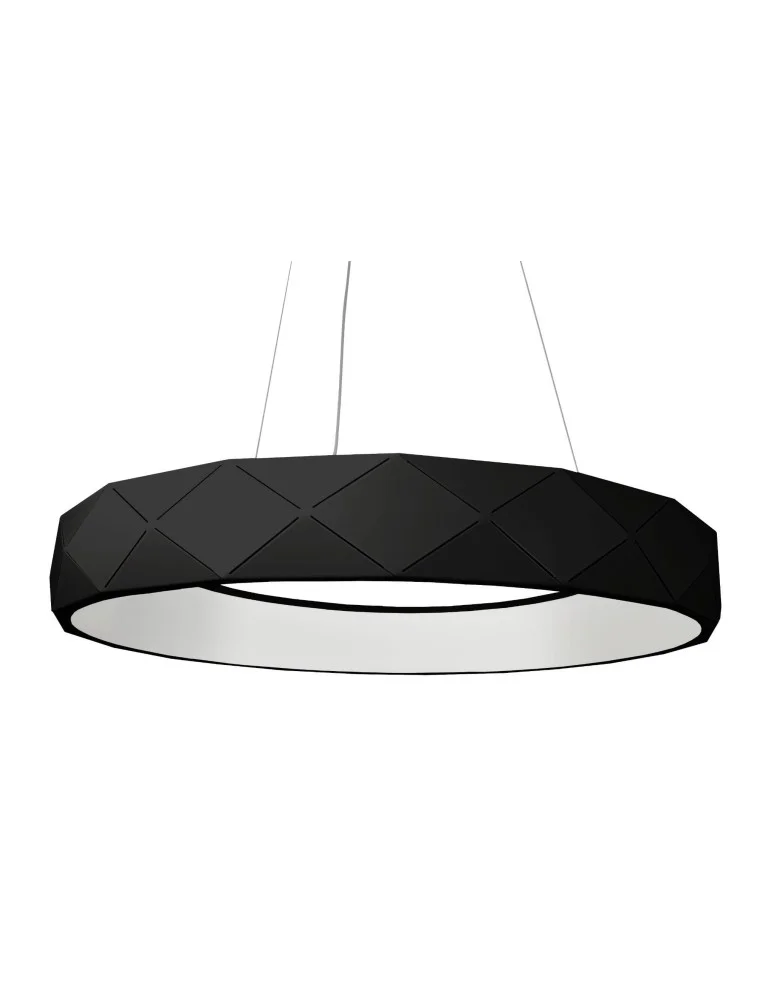 Reus LED pendant black - this is one of many products from the Reus series, in a beautiful design. When choosing lighting for the home, we primarily focus on pendant lamps. All this is done in order to practically illuminate the entire room and achieve an atmospheric mood of the interior. Sometimes, at the same time, in addition to light, we also gain decoration of the house. Such is precisely the product Reus. A large-sized lampshade, it is designed in the shape of an interesting ring with built-in LED light. Created in a modern style. Its top black side, through a quilted pattern and a beautiful high gloss - looks very glamorous! It has a neutral light color. It fits both bright, elegant interiors-even dark ones-but will also look beautiful in white, brown or red, of course. It will look excellent in the kitchen. It is also ideal for large, spacious bathrooms in luxury, for example, with marble sinks and shiny tiles. This lamp, then on point will complete the whole exclusivity. In larger quantities, it would also look great in commercial places - such as restaurants. We invite you to purchase!