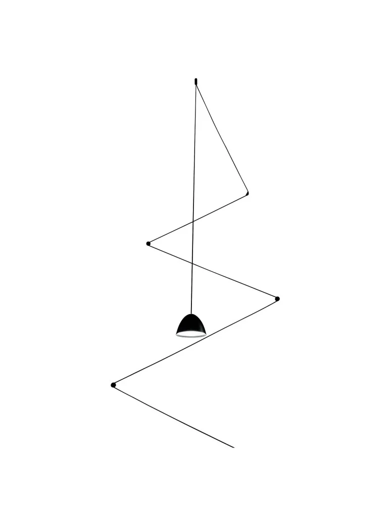 Zig - Zag - is a modest lamp, completely simple although very twisted, minimalist and yet innovative and extremely modern. It is a mini, black lampshade, the cable of which is - note - more than eight meters. This is to install the cable in the kind of arrangement one feels like. For example, just in the shape of a zigzag :) This lighting product, is made of metal in black. It gives one LED light source with a neutral, daylight shade. It fits medium-height interiors, but the most suitable rooms for this model, however, will be high and spacious living rooms with, for example, an open kitchen. It will also work great, in a youth room, or in arrangements with asymmetrical ceilings. If, when choosing lighting, you are guided by practicality and at the same time style and minimalism, then the Zig-Zag lamp is just for you!