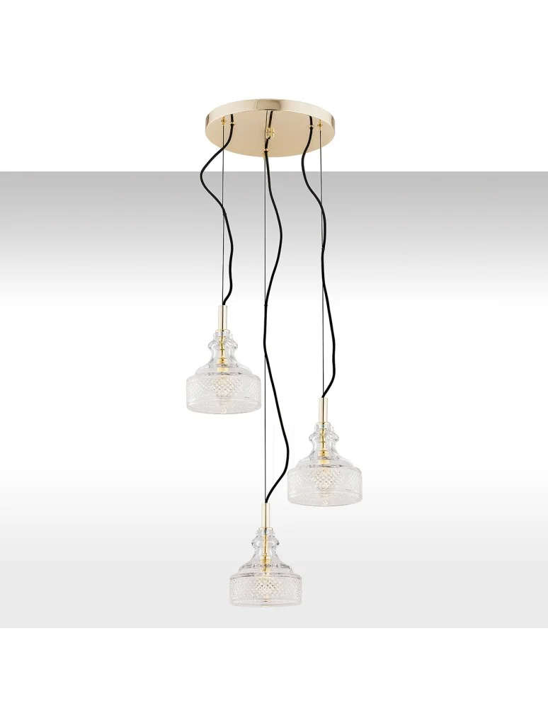 Argon CRUZ 3-fl. pendant lamp on a circular soffit 3x7W (max) transparent brass 1462
