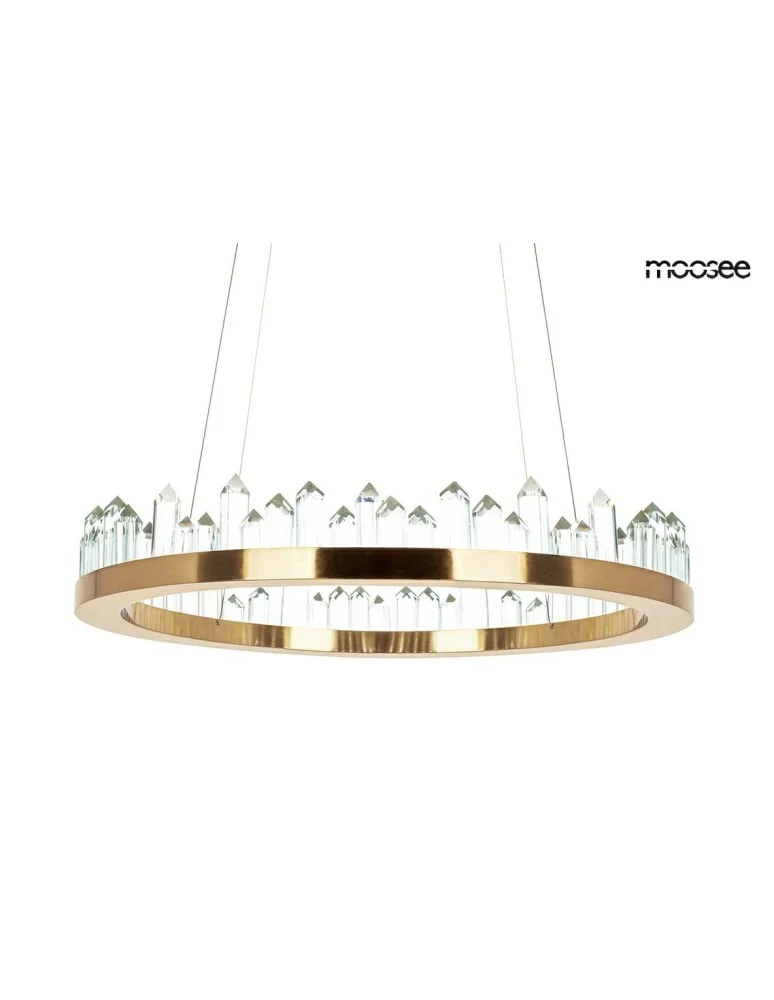 The round shape of the lamp, the combination of gold and crystals provide exceptional illumination to the room.
