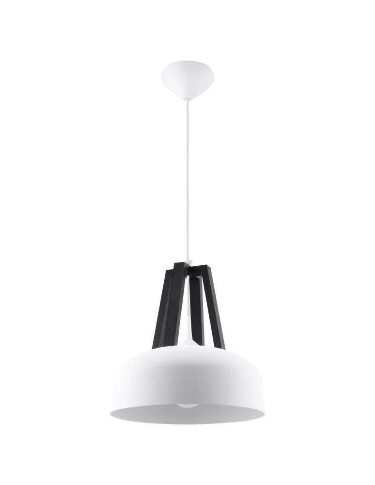 Black or white lampshade enriched with a wooden accent - the design of our modern pendant lamp cries out for a place in an elegant interior. It will quickly make itself at home in it, introducing a unique atmosphere.