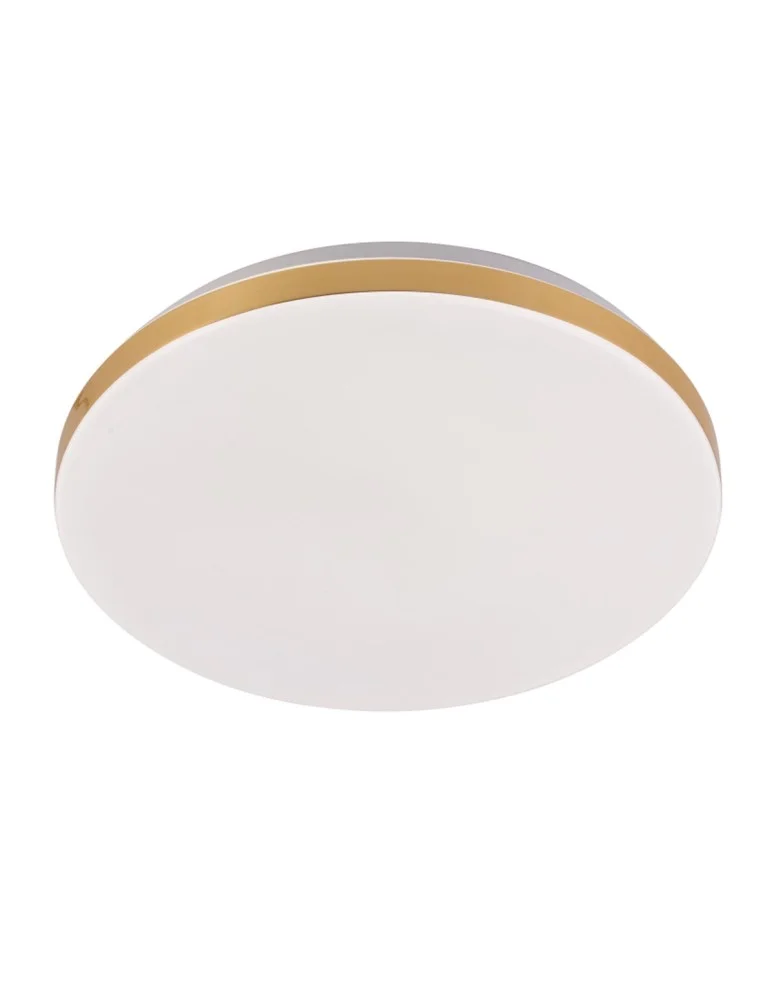 The round Babylon plafond is made of high-quality acrylic. It has a white, milky lampshade, which diffuses light in a soft way. The decoration of the plafond is a gold border, thanks to which the plafond stands out against the background of the white ceiling. Universal white and gold colors, make the plafond will find use in many arrangements. It is designed for almost any room, both at home and in commercial spaces. The plafond has a built-in LED light with a neutral color of 4000K.