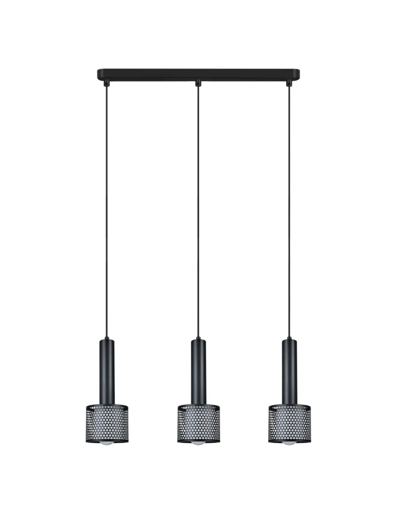 The black pendant lamp with three shades is an elegant combination of modern design and industrial style. Made of high-quality black metal, it is a stylish piece that perfectly complements interiors decorated in a modern spirit. Three cylindrical shades give the lamp a distinctive look, and their openwork structure allows subtle play of light, creating a warm and cozy atmosphere.The pendant lamp with three shades was designed to evenly illuminate the space, thanks to three points of light. The use of E27 sockets allows you to choose bulbs of the appropriate wattage, customizing the lighting. The simple form and elegant black color scheme make the lamp suitable for kitchens, living rooms, dining rooms and commercial spaces. It is an excellent choice for those looking for functional lighting with a touch of modern elegance.