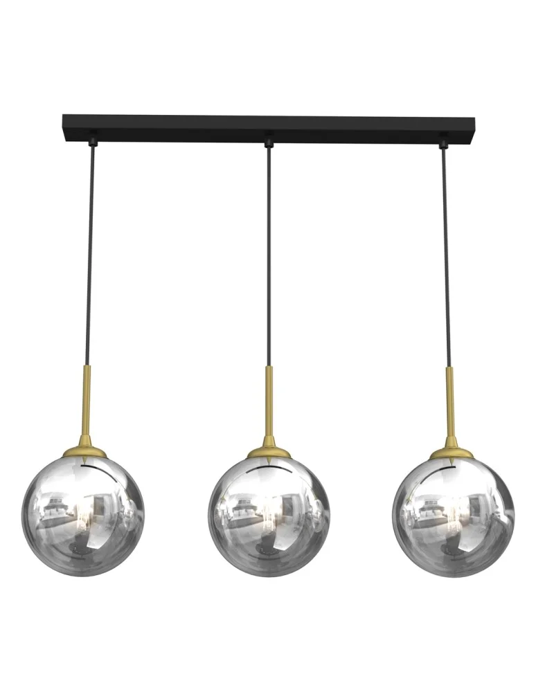 The elongated smoky ball-shaped lamps are available in several sizes. There are sizes starting from a diameter of 140mm and reaching up to 170mm. The lamps can either have an arrangement of regular shades or a completely asymmetrical arrangement of them. The lamps have a strongly closed design, so they concentrate the light very much and are strictly spot lamps. E14 led bulbs are inserted into the lampshades. This is a glamour style lamp, which in the 3-point version will be perfect over the dining room table. There are lamps with symmetrical or irregular positioning of the lampshades. Such a variety of models is adapted to the requirements of specific rooms. The mounting of the smoky spheres itself has a golden accent, which breaks the gray and silver tones that dominate the color scheme of the lamp. Ceiling lamp with shades in the size of 140mm + 200mm + 250mm will work well in various types of rooms. This is a classic design that can most interestingly blend with bright bathroom interiors. LED E14 and E27 bulbs are fitted to the lampshades here. The lamp is kept in glamour style, it fits into classic interiors, but with a touch of modernity. It will illuminate small rooms of bathrooms and toilets well, while giving them a cozy and unique style. A stylish mix of different materials combine into a harmonious whole, which makes the lamp eye-catching even when it is off.