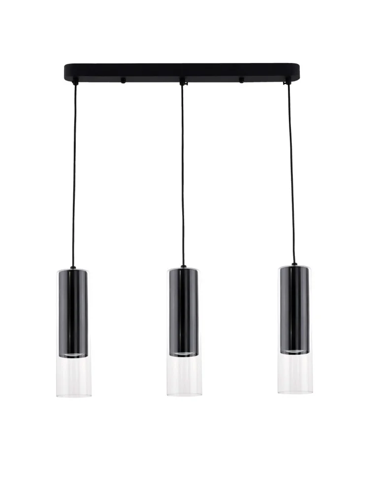 Do you like such colors as black and white? If so, the MANACOR 3 LINE HANGING BLACK lamp will work well in your interiors. Certainly, this product contains the color black, which is the smaller metal shade. The white color is absent, but there is a glass, larger shade that is transparent, creating a dark and light layer at the same time. The larger shade surrounds the smaller one, forming the shape of a single tube open at the bottom. There are three such shades in the case of this product. They are arranged in a single horizontal line, on a metal rectangular base in black. However, if you would like the MANACOR 3 HANGING LINE lighting to contain more of the color white, we encourage you to purchase both this model in black and white. Then a beautiful lighting effect will be created, which will perfectly match the black&white arrangement. Manacor 3 line pendant lamp, contains three light sources - GU10 and will beautifully illuminate modern and classic interiors. We wish you a pleasant and successful shopping experience!