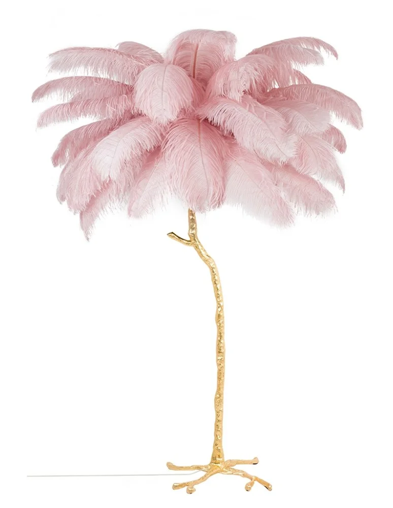 The lamp shade is formed by 45 pieces of densely arranged natural ostrich feathers, 55-60 cm long.