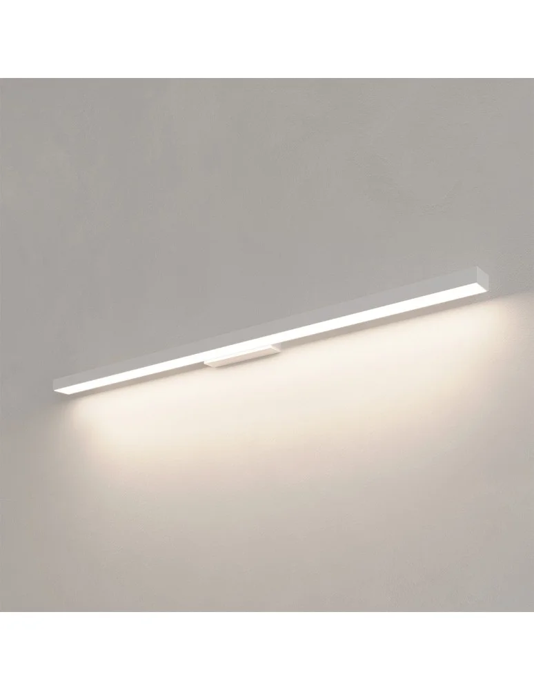 Kinkiet Aqua to elegancka lampa łazienkowa, wykonana z trwałego białego metalu, która dzięki klasie ochronności IP44 doskonale sprawdzi się w wilgotnych pomieszczeniach. Wyposażony jest we wbudowane źródło światła LED CCT, które umożliwia ustawienie barwy światła przed montażem, bezpośrednio w podsufitce. Jego prosty, podłużny kształt idealnie nadaje się do montażu nad lustrem, zapewniając funkcjonalne i stylowe oświetlenie w każdej łazience.