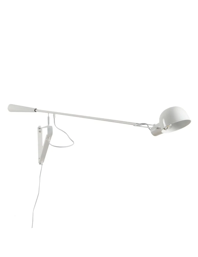 Lampa ścienna MOVE S wykonana z metalu w kolorze białym posiada ruchome ramię które można regulować w wielu płaszczyznach.