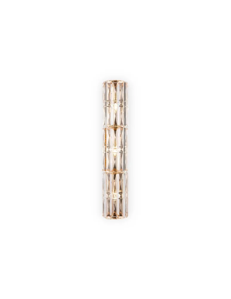 Materiał oprawy – metal, odcienie – chrom i złoto. Wystrój – przezroczyste szklane kryształy. Architektoniczny szlif elementów dekoracyjnych. Źródłem światła są żarówki z podstawą E14.