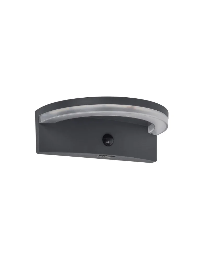 Solarny kinkiet VYZOR zasilana energią słoneczną, wykończona w ciemnoszarym kolorze, charakteryzuje się nowoczesnym, półokrągłym kształtem i wyposażona jest w czujnik PIR. Ten design zapewnia skuteczne oświetlenie aktywowane ruchem, idealne do zwiększenia bezpieczeństwa i tworzenia atmosfery na zewnątrz.