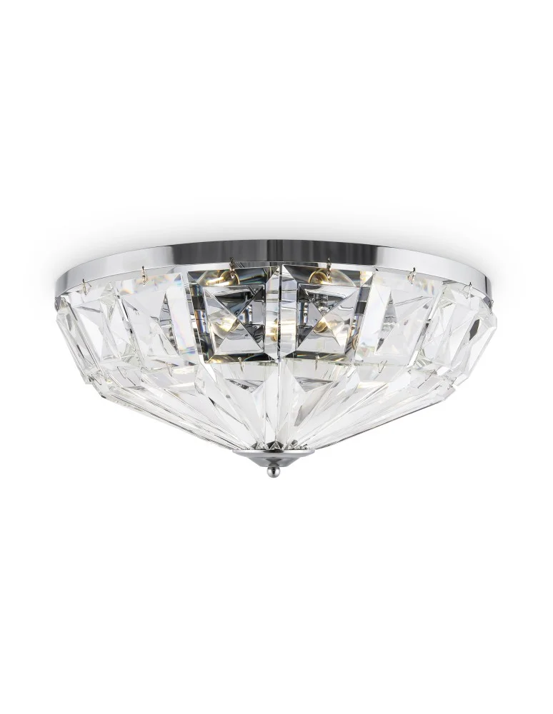 Materiał oprawy – metal, odcienie – chrom i złoto. Wystrój – przezroczyste szklane kryształy. Architektoniczny szlif elementów dekoracyjnych. Źródłem światła są żarówki z podstawą E14.