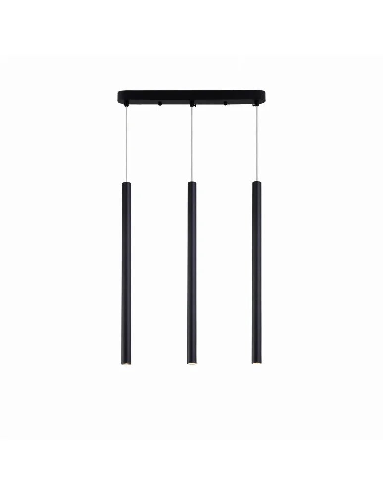 LUNGO 3 CZARNA LAMPA WISZĄCA - to skromna, bardzo minimalistyczna lampa wisząca. Swoją prostą konstrukcją przyciąga uwagę innych. Lampa Lungo, zbudowana jest z metalowego stelaża w kolorze czarnym. U podstawy stelaż jest w kształcie prostokąka, od którego odbiegają 3 przewody, zakończone źródłem światła G9. Przewód od mniej więcej połowy obudowany jest w bardzo wąską czarną tubę. To ozdoba sama w sobie. Lampa ta jest bardzo długa, ponieważ ma około półtora metra. Jeśli chodzi o styl oprawy, to jest to idealne oświetlenie dla wnętrz nowoczesnych i modernistycznych, choć w ekskluzywnych aranżacjach, odnajdzie się najlepiej! Znakomicie sprawdzi się jako dodatkowe oświetlenie w kuchni, w salonie, w większej ilości także w jadalni nad stołem czy w przedpokoju. Zachęcamy do zapoznania się z innymi lampami z serii Lungo, by dopasować odpowiednią wielkość i kolor do swoich aranżacji.