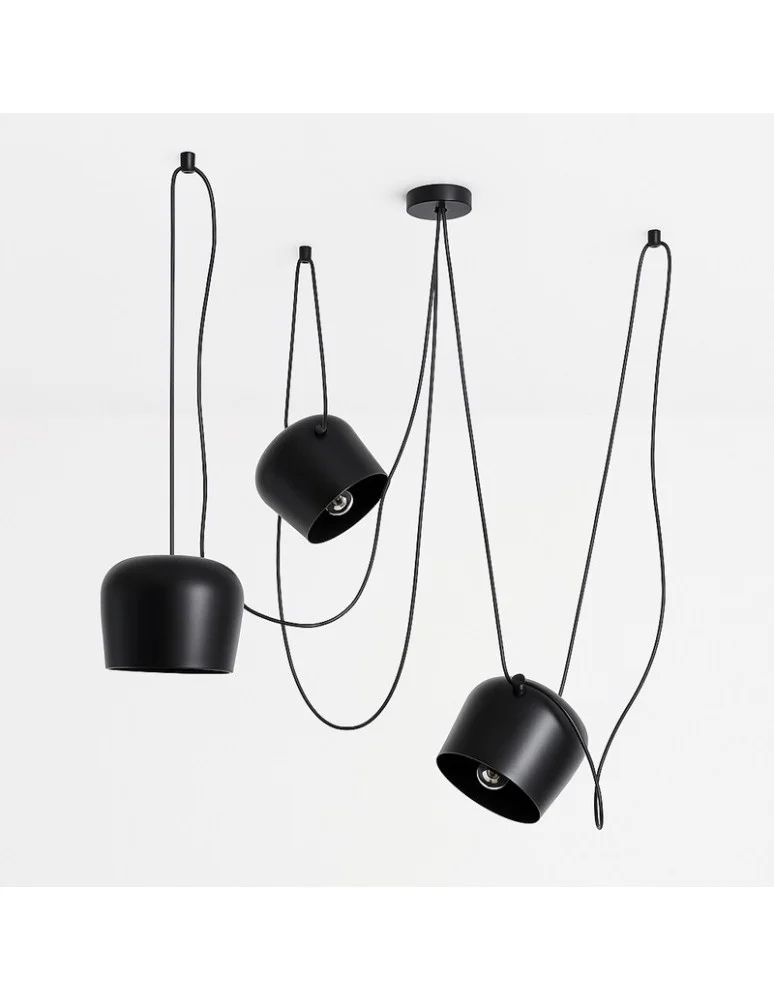 Czarne kable dodają lampie elegancji i minimalistycznego wyglądu, który świetnie komponuje się z klasycznymi oraz nowoczesnymi aranżacjami wnętrz. Klosze cylindryczne nawiązują do stylistyki retro, nadając lampie charakterystyczny wygląd i oryginalny styl.
