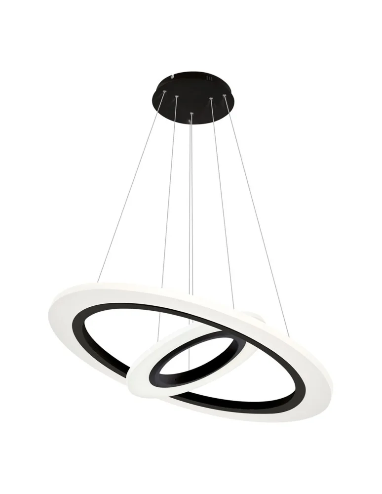 Wisząca lampa sufitowa Cosmo 348 jest połączeniem współczesnych trendów z praktycznymi rozwiązaniami. W lampie zastosowano dwie okrągłe oprawy o średnicy 40 cm i 100 cm. Należy wspomnieć także o możliwości regulowania wysokości każdej z nich od 60 do 120 cm, co pozwala na dopasowanie lampy do różnego rodzaju pomieszczeń. Dodatkowo każdą z opraw można również pochylać, nadając lampie indywidualnego stylu. Całość wykonano z wysokiej jakości materiałów: metalu i akrylu.