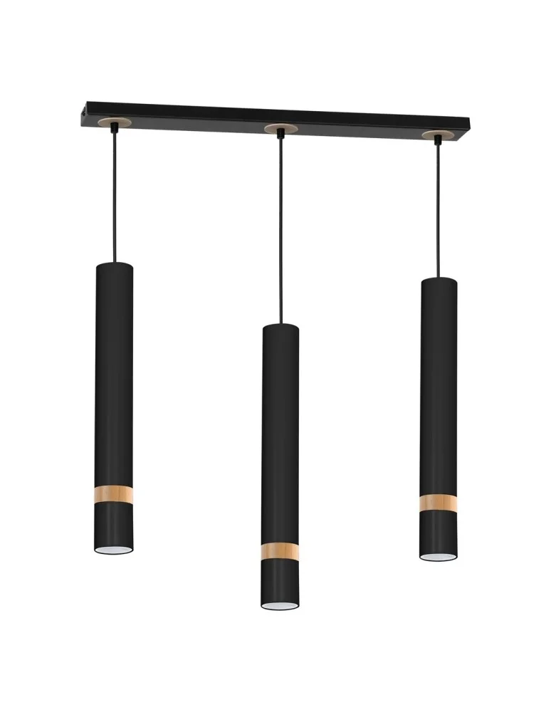 • Lampa wisząca z 3 źródłami światła, czarny-drewno MLP6306