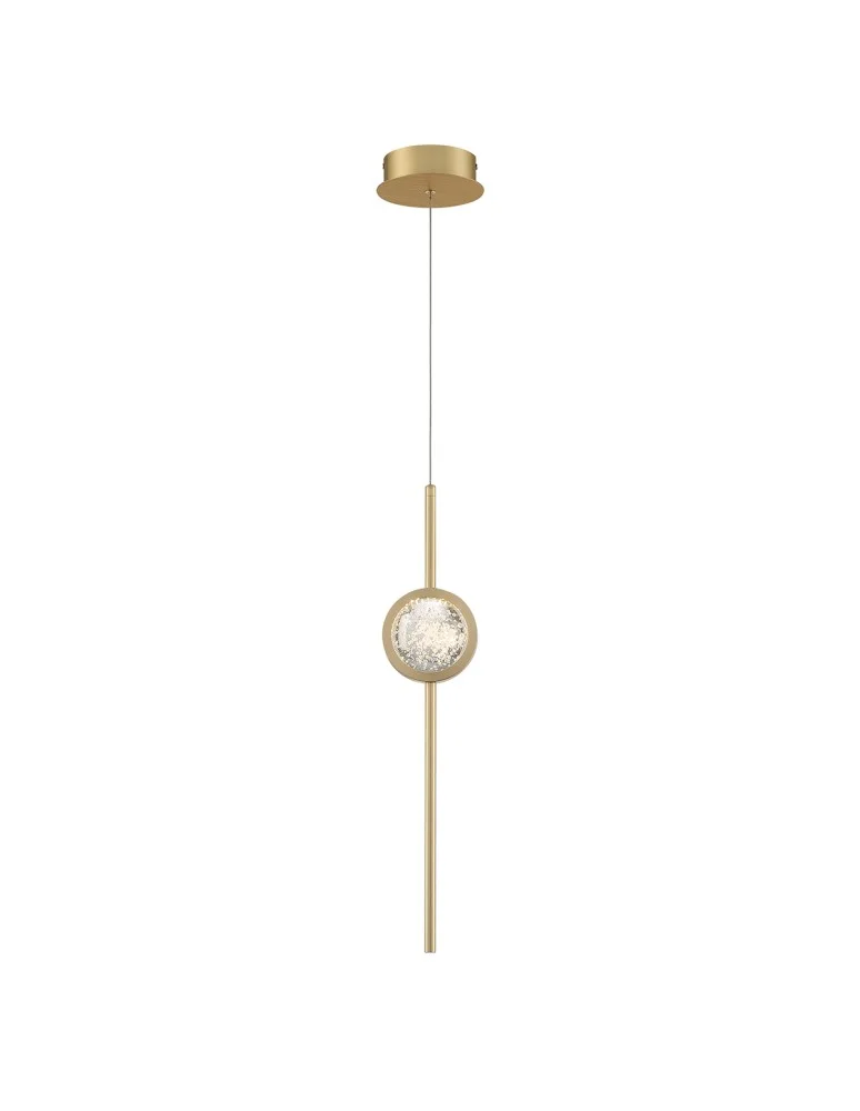 W lampach wiszących Barletta głównym elementem dekoracyjnym jest anodowany pręt zawieszony pionowo, dostępny w wykończeniu czarnym lub szczotkowanym złocie. Każdy pręt wyposażony jest w przezroczystą, szklaną kulę ozdobioną subtelnym wzorem bąbelków, która idealnie komponuje się z anodowanym pierścieniem.
