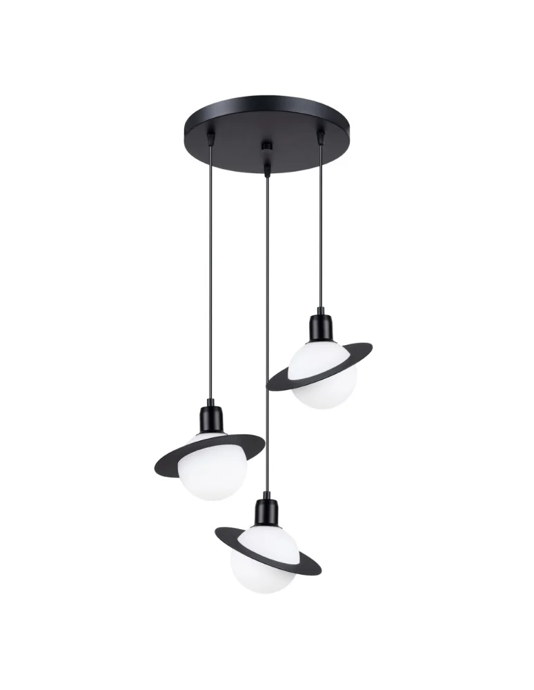 Ta elegancka lampa wisząca, inspirowana wyglądem planety z pierścieniami, jest doskonałym wyborem dla miłośników nowoczesnego designu. Jej unikalny kształt nadaje jej wyjątkowy, kosmiczny charakter. Klosz lampy ma formę białej lub czarnej kuli, otoczonej płaskim, dyskretnym pierścieniem, co sprawia, że przyciąga wzrok i stanowi stylowy akcent w każdym wnętrzu. Idealna do zawieszenia nad stołem w jadalni, w salonie lub jako efektowna dekoracja w sypialni. Ta lampa nie tylko zapewnia doskonałe oświetlenie, ale także dodaje wnętrzu nowoczesnego i nieco futurystycznego klimatu.