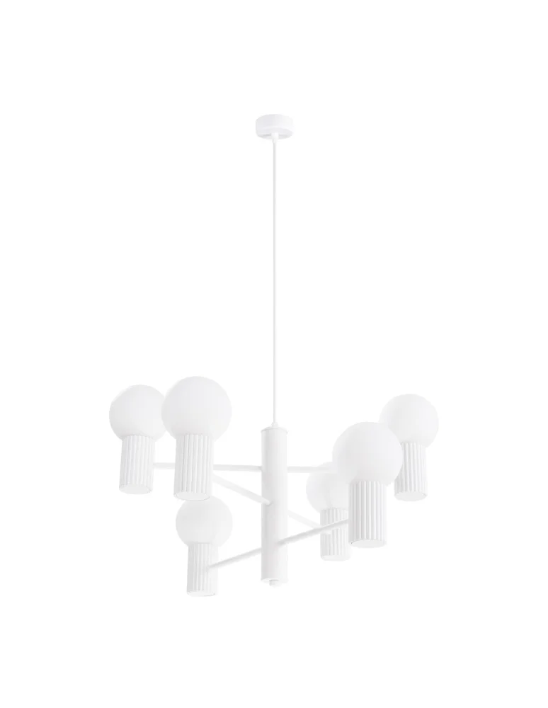 Wyjątkowa forma i bogata paleta kolorów – HALO to odpowiedź na potrzeby współczesnych wnętrz. Jej rozpoznawalny, ryflowany korpus w połączeniu z matową, mleczną kulą tworzy nowoczesny, a jednocześnie przytulny akcent w każdej przestrzeni. Lampa HALO dostępna jest w wersji wiszącej (1 i 3 punkty), jako żyrandol oraz kinkiet i plafon (oba modele z podwyższoną odpornością IP44, idealne także do łazienek), a także jako stylowa lampka biurkowa, co daje nieskończone możliwości aranżacyjne.